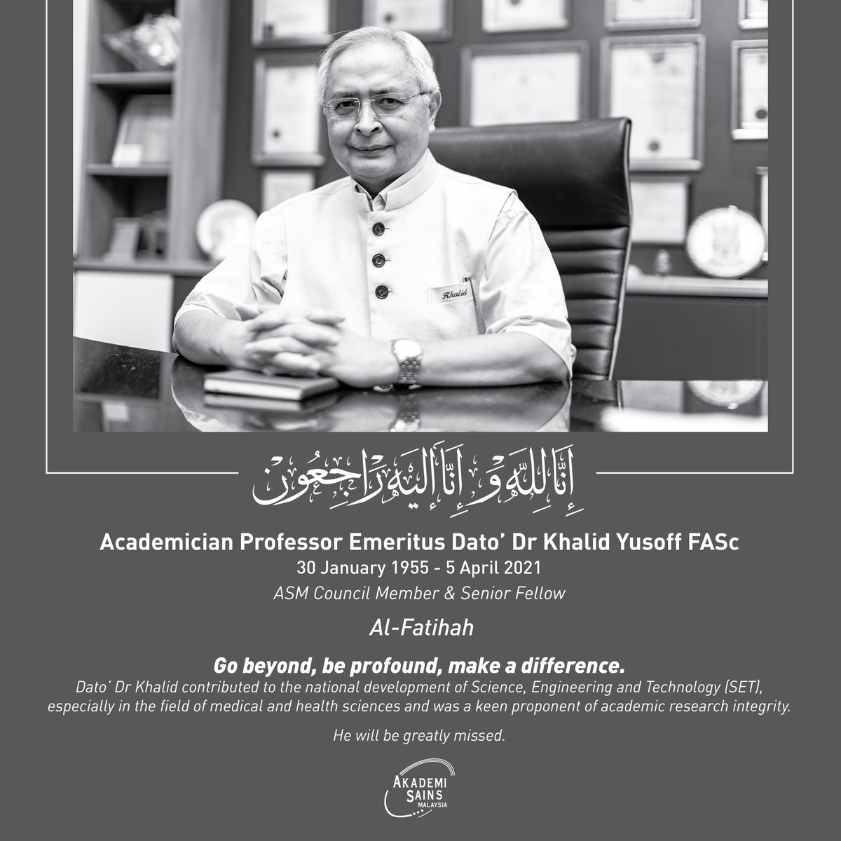 Akademi Sains Malaysia On Twitter Our Prayers And Deepest Condolences To The Family Of Allahyarham Academician Professor Emeritus Dato Dr Khalid Yusoff Fasc We Surely Belong To Allah And To Him We